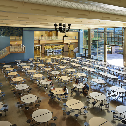 This award winning project in Yakima, Washington welcomes the outside in. Expansive glass walls join the exterior courtyard commons area with the surrounding school. ELP’s “Hole in the Wall” fixtures were used to indirectly light this versatile space. Discussing the choice, KDF Architecture said, “we were very pleased that we were able to seamlessly pair artificial light with natural light. Where needed, the fixtures blended in with the buildings aesthetic features. Likewise, when needed, they highlighted key elements. The fixtures were able to meet and exceed a very tight energy budget while providing the light levels necessary for very demanding and flexible spaces.” KDF teamed with NAC Architecture to design this vibrant high school. According to their website, it was inspired by the rugged beauty of the Yakima Valley and designed to have a strong presence and visibility to the community. Mission accomplished to a great team!