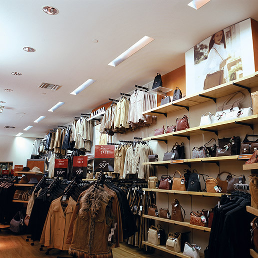 Our “Trimless” option was used for these AK Series fixtures in Wilsons Leather. The design allows the ceiling finish to end right at the edge of the lighted opening for a clean construction appearance. Excellent light levels and uniformity are provided for product viewing, with the fixtures mounted 3 feet from the merchandise and 8 feet on center. The quality of light appropriately accentuates the quality of the product.